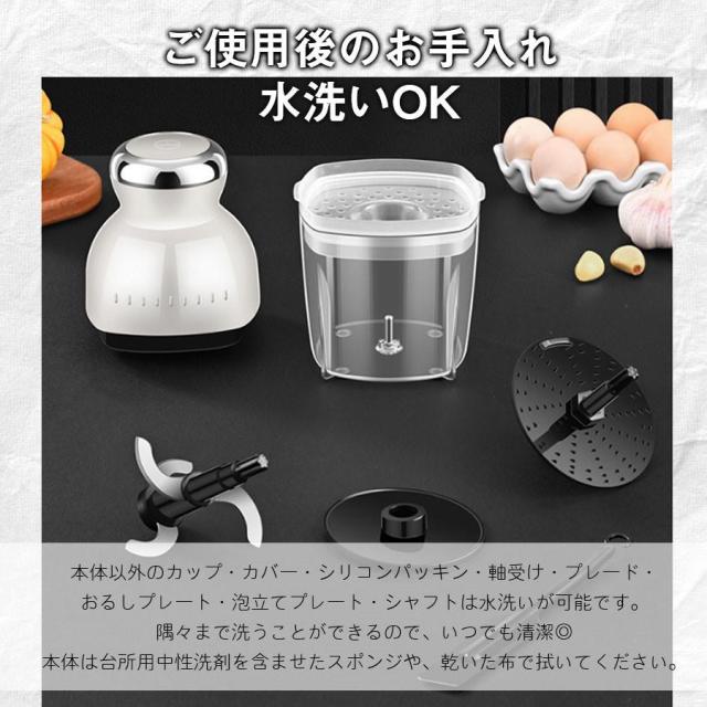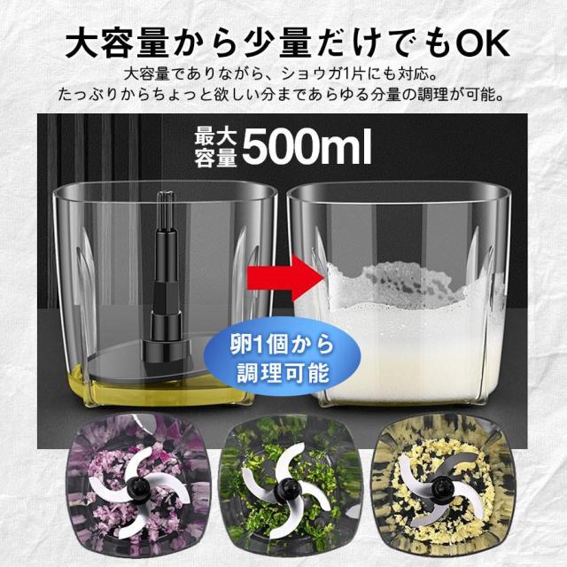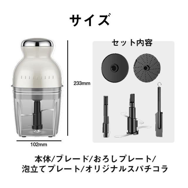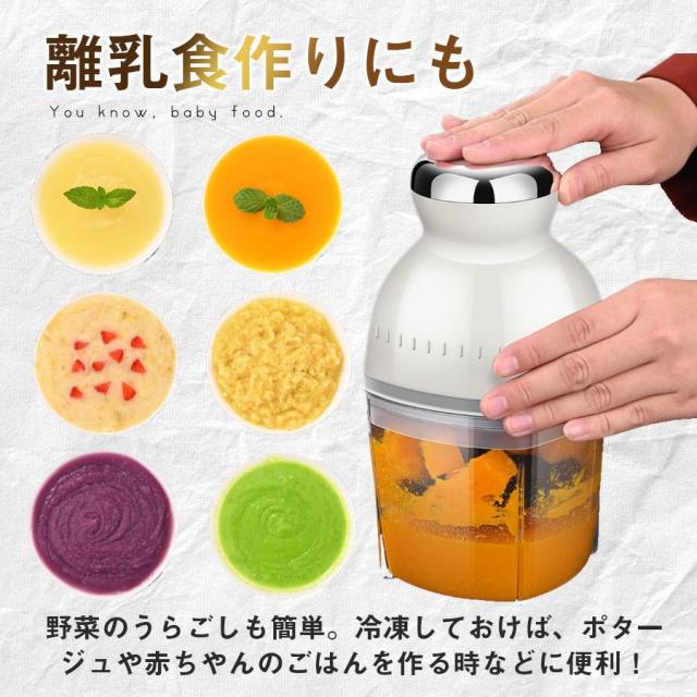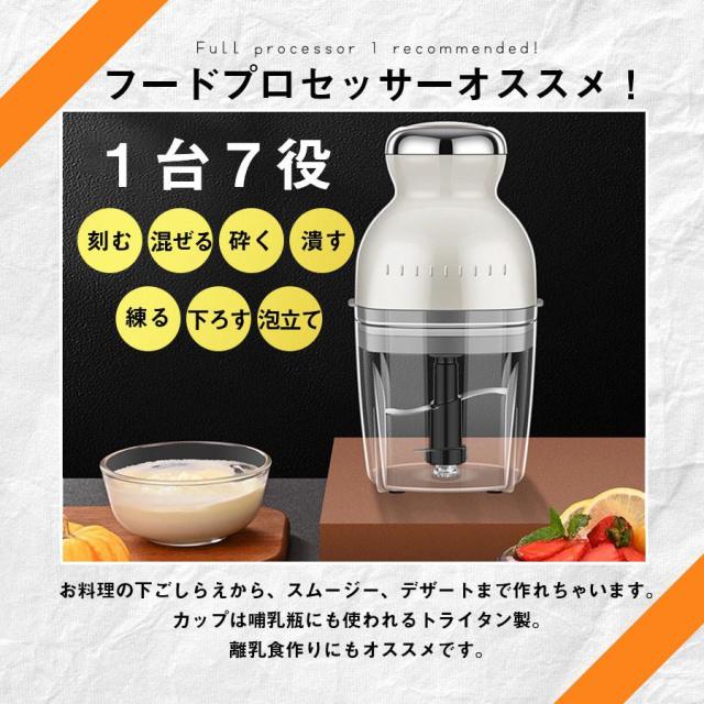 【爆売れ中!】フードプロセッサー ミキサー アイスクラッシャー 大根おろし 離乳食 介護食 氷砕く ホイップ 泡立て ひき肉 おしゃれ 500ml 7役 丸洗い可 爆買