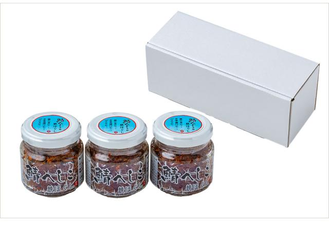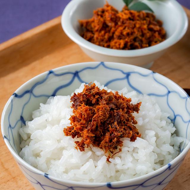 サバを塩とぬかに漬け込んだ『鯖へしこ』は若狭地方の郷土料理。それを焼きほぐし、手軽な瓶詰めにしたのがこちら。海のチーズとも評される独特の旨みと塩辛さが交わる深い味わいは、そのまま酒の肴に、ご飯のお供にと使い勝手よし。パスタに絡めても◎。