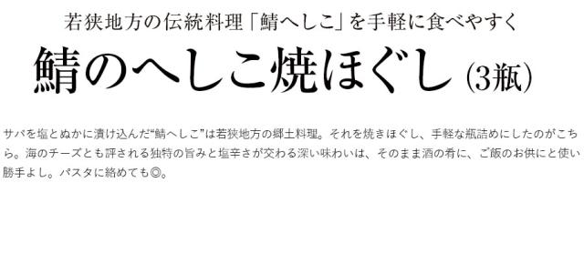 鯖のへしこ焼ほぐし(3瓶) サバ 福井 北陸 若狭 郷土料理 ご飯のお供 肴 つまみ アテ パスタの具 常温保存 長期保存