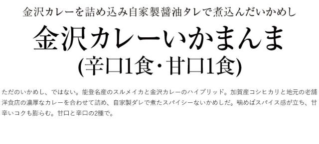 金沢カレーいかまんま(辛口1食・甘口1食) いかめし するめいか 能登 石川 北陸 旨辛 おやつ 夜食 肴 アテ つまみ 常温保存 長期保存 御歳暮ギフト