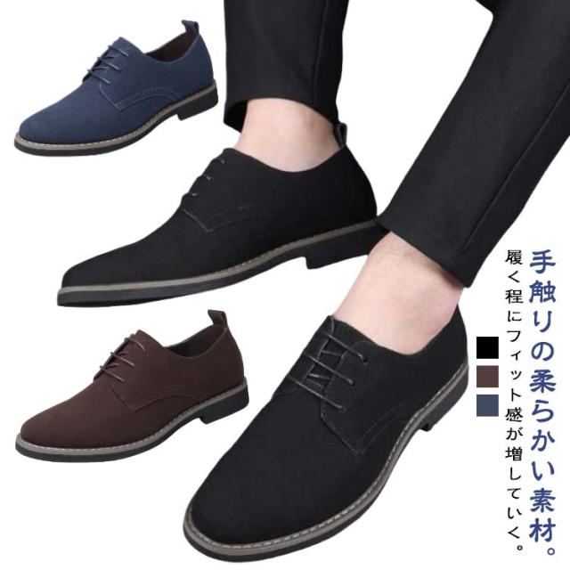 プレーントゥ カジュアルシューズ ビジネス メンズ シューズ ラウンドトゥ スニーカー ビジネスシューズ スウェード スエード調 スエードシューズ スラックスに合う靴 レースアップ メンズシューズ 大人 紳士靴 靴 革靴 軽量