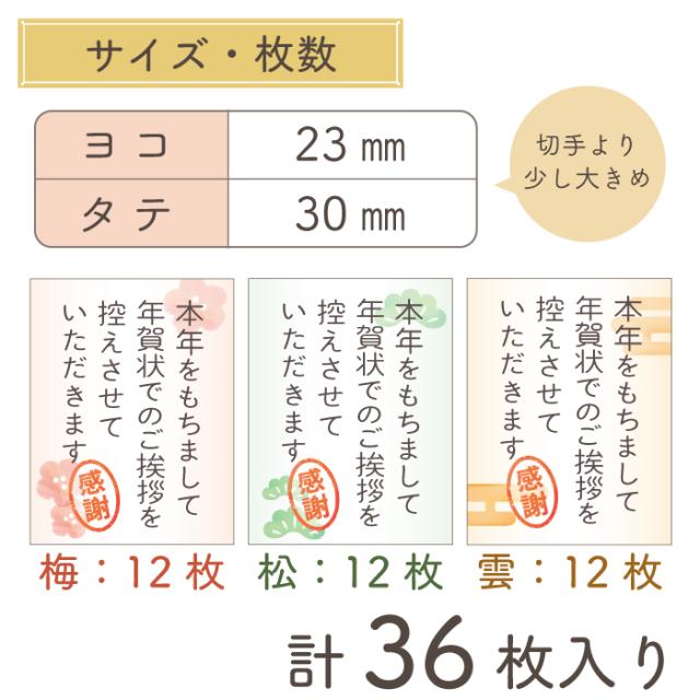 年賀状じまいシール 36枚 文章印刷済み 終活年賀状 年賀状辞退 感謝の気持ちを一緒に伝える
