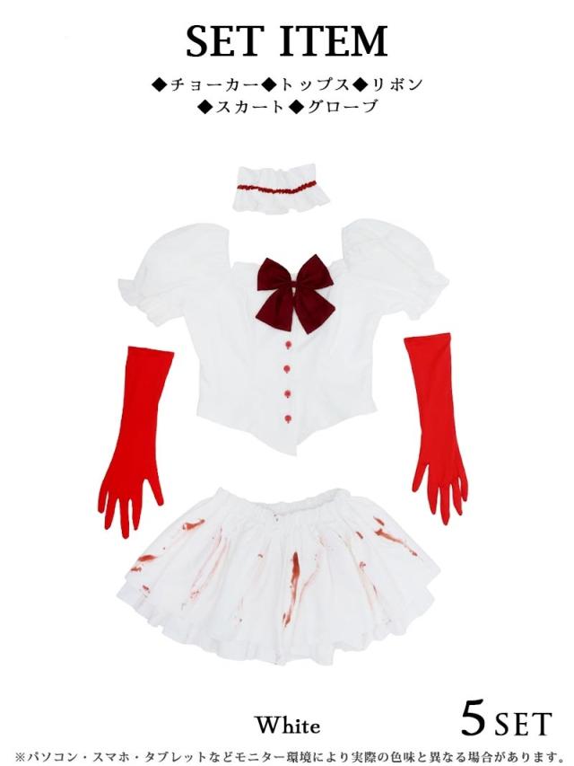セット内容:チョーカー・トップス・リボン・スカート・グローブ