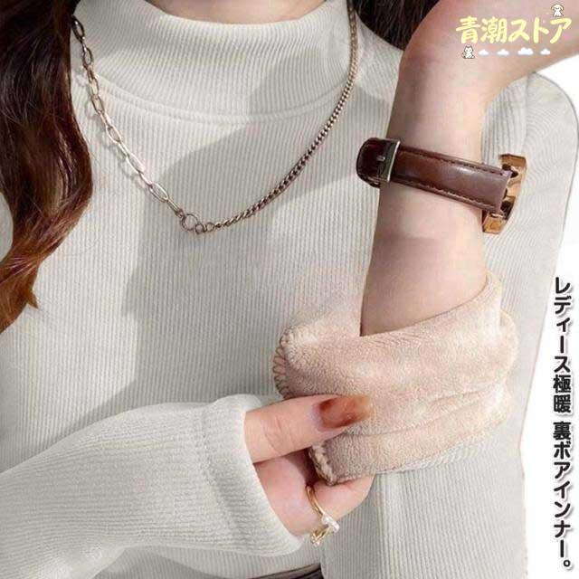 | レディース極暖 裏ボアインナー。 伸縮性が高く、肌触りのよい起毛素材で保温力に優れています。 首元をしっかり包み、暖かさを逃さないハイネックタイプ。 一枚でしっかり暖かいからインナーとしてはもちろん、お部屋で過ごすリラックススタイルにも! | |