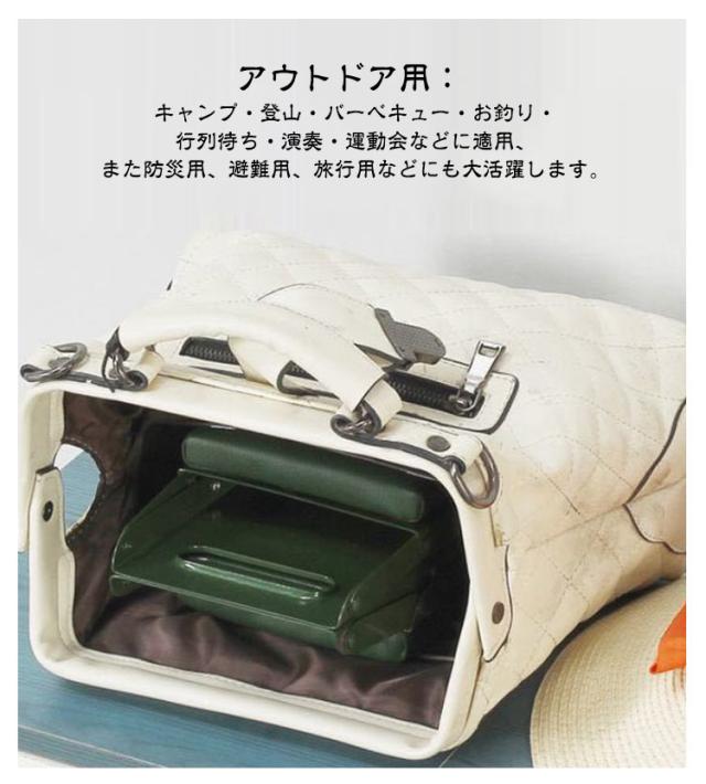 | 【クッション付き座面】柔らかい触感のクッション素材を座面に採用するので、長時間座ってもお尻が痛くなりにくいです。子供でも大人でも座れる折畳み椅子です。 【抜群の安定性】三角形のデザインや滑り止め付くなので、安心!大人の男性が乗っても長時間安定して座り続けられます。 【コンパクト】折畳みデザインで、どこでも持ち運べます。収納ポーチも付属する、とても使いやすいです。 【さまざまな場面で使える】ご家庭用:子供でも大人でも使える、玄関椅子でも使用可能。収納も楽々。アウトドア用:キャンプ・登山・バーベキュー・お釣り・行列待ち・演奏・運動会などに適用、また防災用、避難用、旅行用などにも大活躍します。 | |