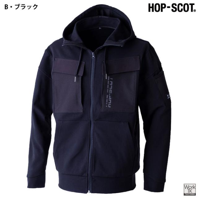 HOP-SCOP ダンボールニット フルジップ パーカー ストレッチ 長袖 ジャンパー ジャケット フード付き ブルゾン 秋冬 作業着 作業服 アウトドア スポーツ カジュアル おしゃれ ブラック 黒 メンズ レディース 大きいサイズ CUC chusan cs-700109-b