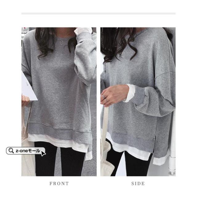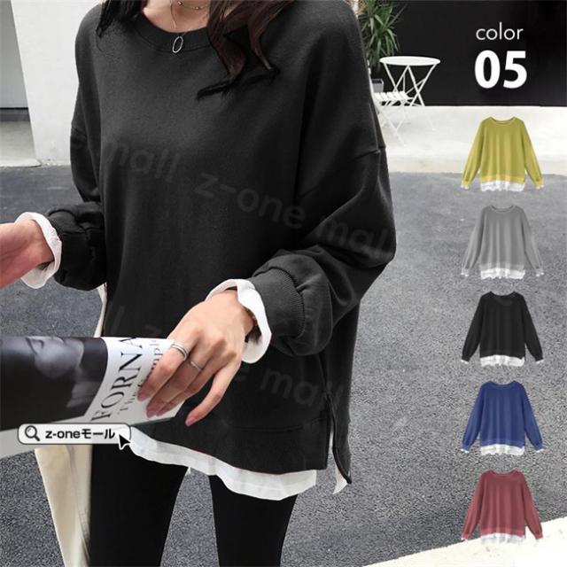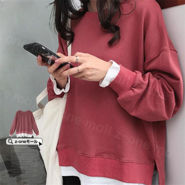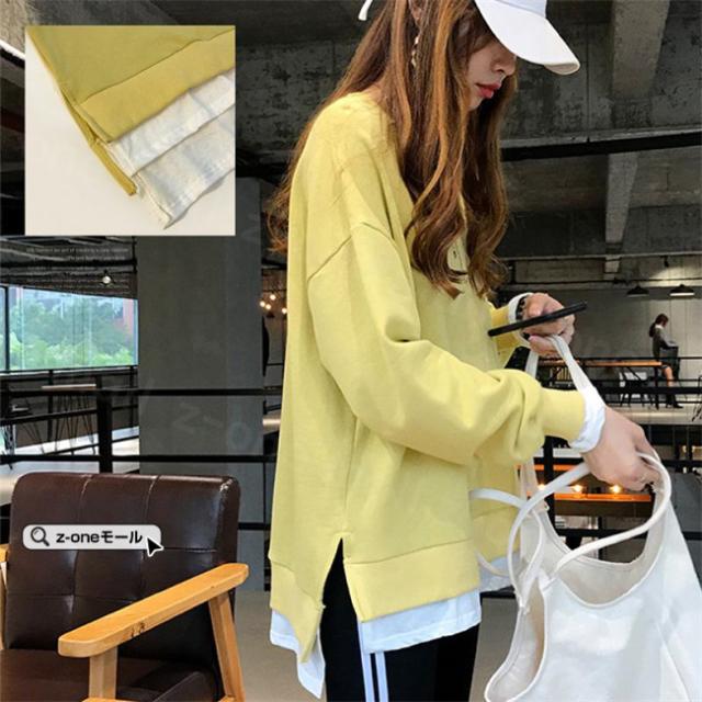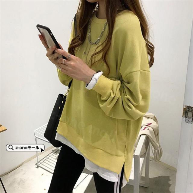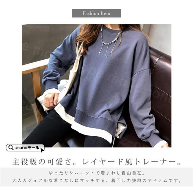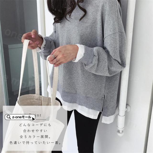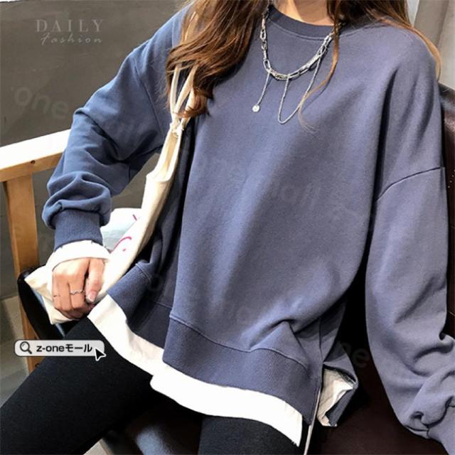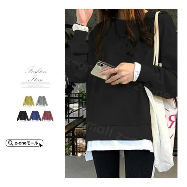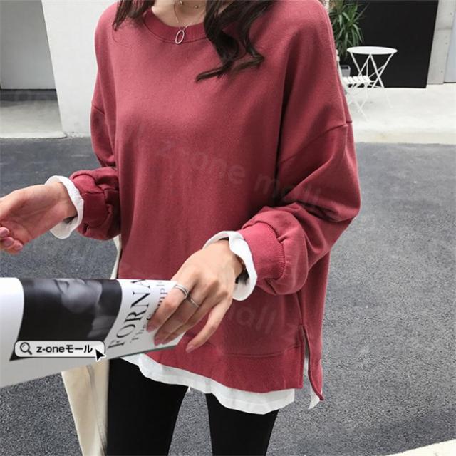 トレーナー レイヤード風 付け裾 スウェット 微起毛 プルオーバー長袖 可愛い 無地 春新作 レディースファション カジュアル トップス tシャツ Tシャツ 春秋冬 通勤 通学 女性 ゆったり ホワイトデー 卒業式