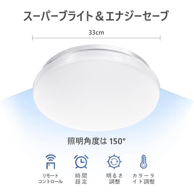 [超高輝度・高演色] 約8畳のスペースに対応するLEDシーリングライトです。 半透明のLEDビーズを採用し、高品質なアクリルパネルが自然光に近い快適で均一な光を提供し、明るく快適な空間を作り出します。