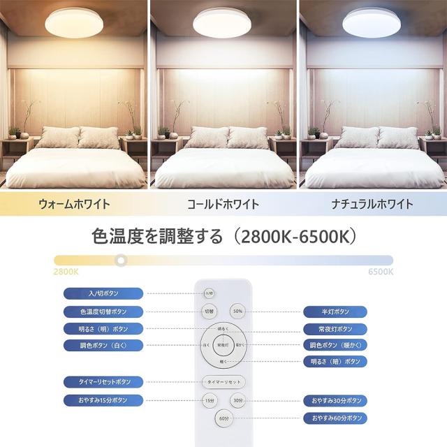 LED シーリングライト LEDシーリングライト 6-8畳 調光調色 昼光色 電球色 調光機能 メモリ機能 天井照明 LEDライト おしゃれ 常夜灯モード 15分/30分/60分タイマー 玄関 寝室 和室 照明器具
