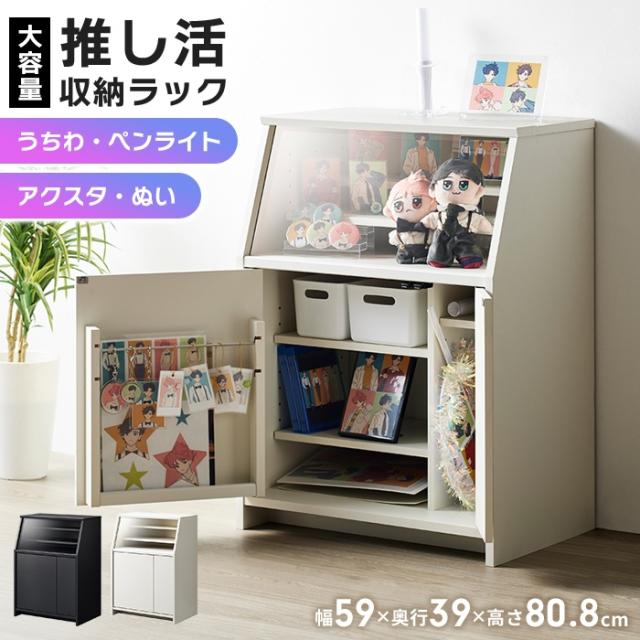推し活収納ラック 幅59 奥行39 高さ80.8cm 推し活収納 推し活 グッズ収納 アクスタ うちわ ペンライト タオル 大容量 扉収納 アクリル板 魅せる収納 推しピ かわいい おしゃれ キャビネット アイドル フィギュア アクリルスタンド オタバレ 飾れる 収納 棚 ラック