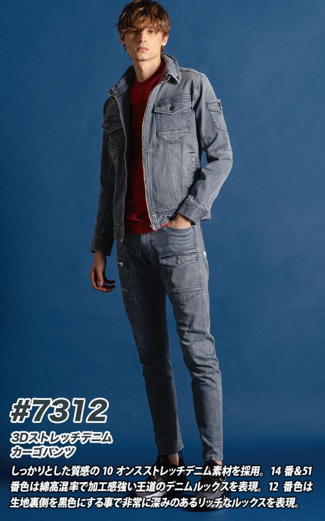アイズフロンティア 2025年 秋冬 新商品 3Dストレッチデニムカーゴパンツ 7312 ストレッチ 洗い加工 動きやすい おしゃれ かっこいい スタイリッシュ カジュアル オールシーズン 作業着 作業服 I’ZFRONTIER