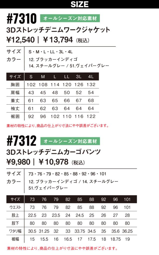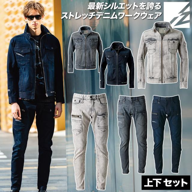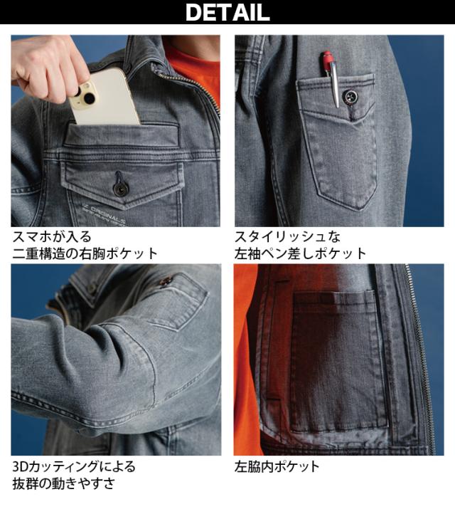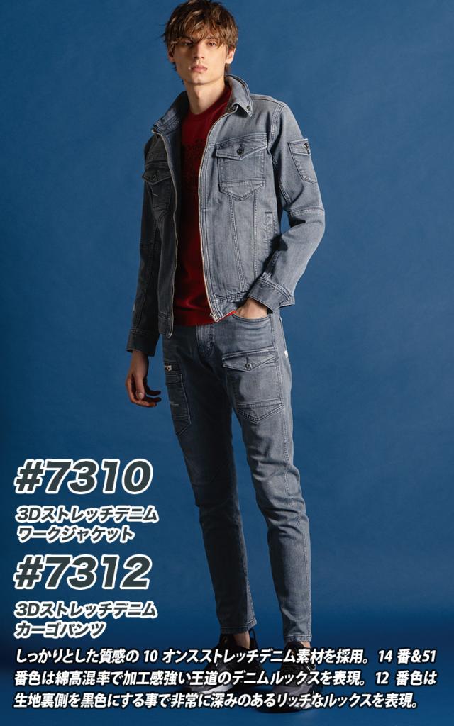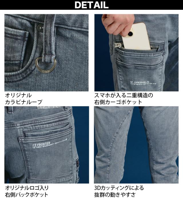 アイズフロンティア 2025年 秋冬 新商品 3Dストレッチデニムワークジャケット カーゴパンツ 上下セット 7310-7312 洗い加工 動きやすい おしゃれ かっこいい スタイリッシュ カジュアル オールシーズン 作業着 作業服 I’ZFRONTIER
