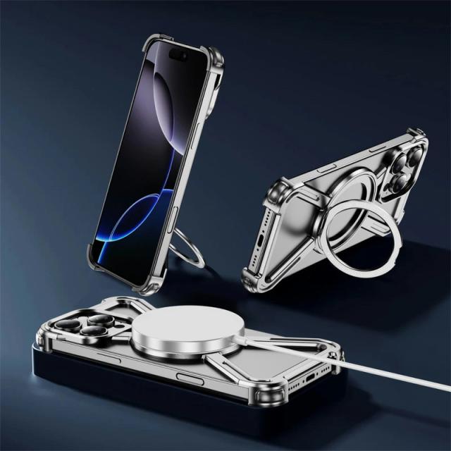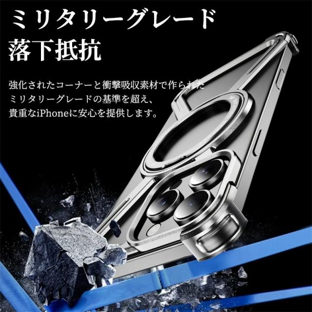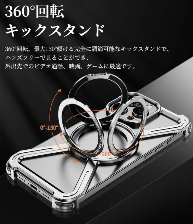 iPhone17ProMax ケース iPhone17 17Pro 17ProMax Air 16E 16 16Plus 16Pro 16ProMax ケース Magsafe対応 スタンド iPhone 15Plus 15Pro 15ProMax 14Plus 14Pro 14ProMax iPhone 13 Pro Max ケース メタル アルミ合金 アルミニウム 360°回転 キックスタンド 中空放熱 耐衝撃