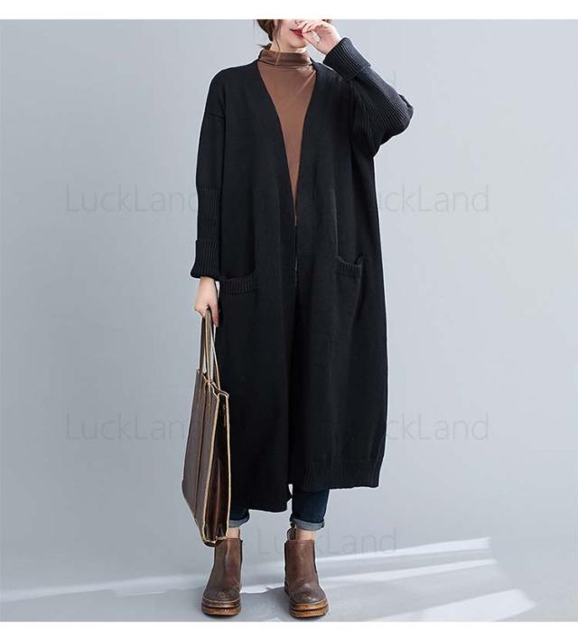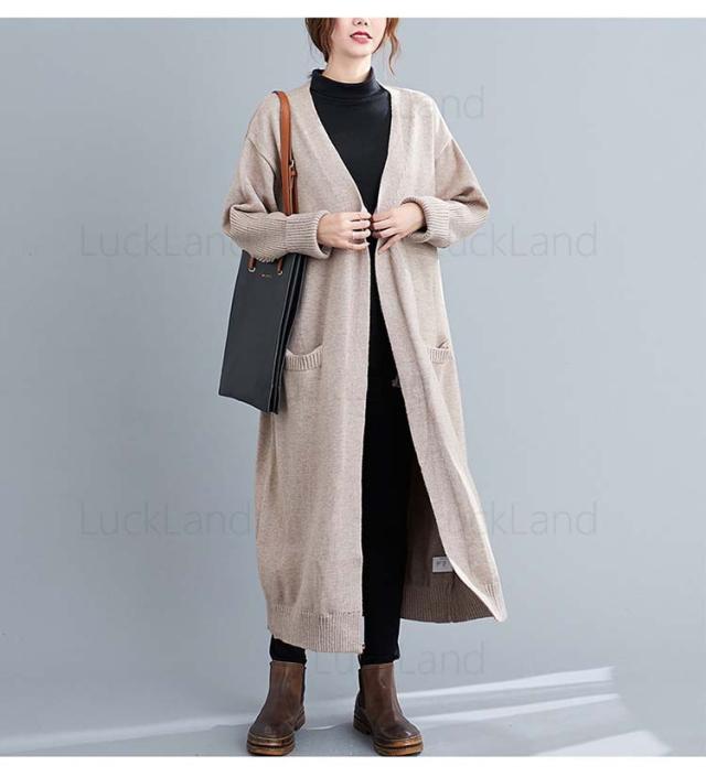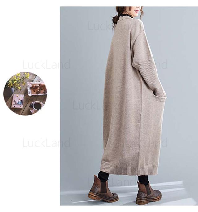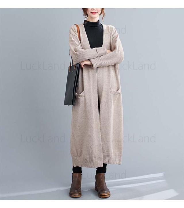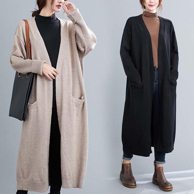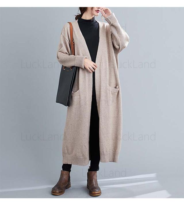 レディース カーディガン 秋冬 膝丈 ショール ロングニット コート ニットカーディガン レディース アウター ストール セーター Vネック ロングニット アウター