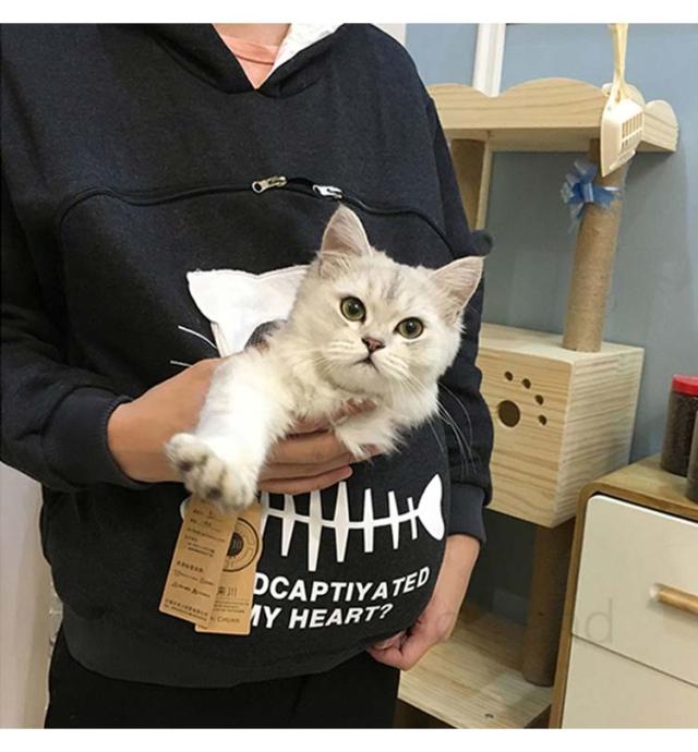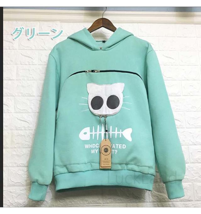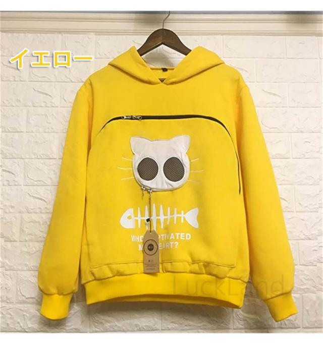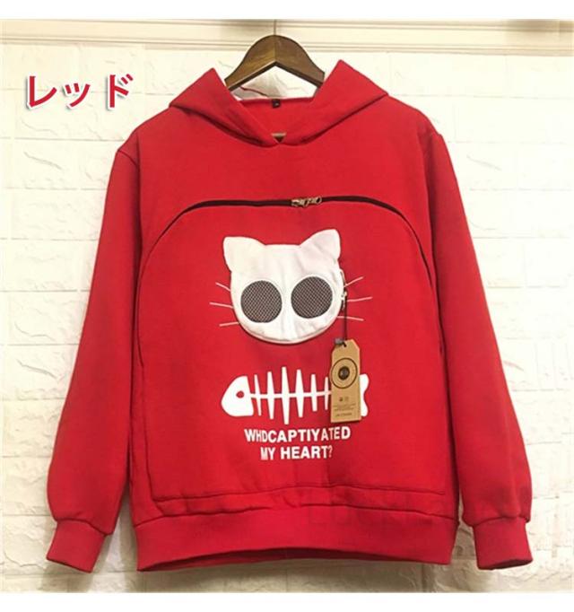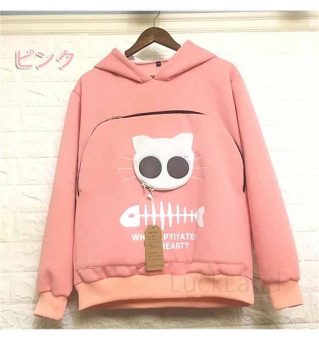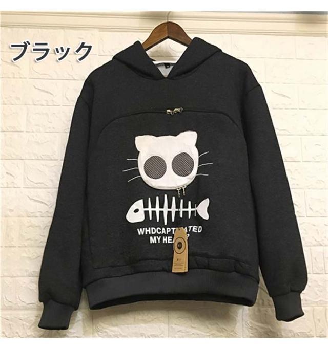 にゃんパーカー メンズ レディース にゃんこ ポケット 森ガール 猫 小動物 フード付き 猫抱っこ用服 秋冬 大人用 猫が入るパーカー 男女兼用