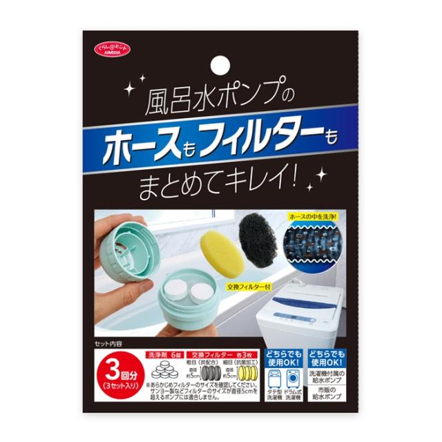 風呂水ポンプ用の洗剤とフィルター 日本製で安心 ホース内もスッキリ 清潔3回分入り お風呂ポンプ洗浄剤 メンテナンス 洗濯 ポンプ掃除 ホース フィルター交換 汚れ対策 ポンプクリーナー ホース内洗浄
