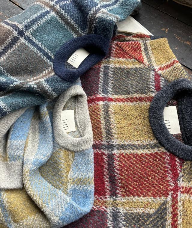 「チェック柄プルオーバー」は、伝統的なマドラスチェックを現代的にアレンジして、モダンさが融合したニット。素材の軽さと柔らかさ、国内最高峰のニット工場の技術が詰まった一着。シンプルながらも印象的なデザインで、ユニセックスで楽しめるアイテムです。