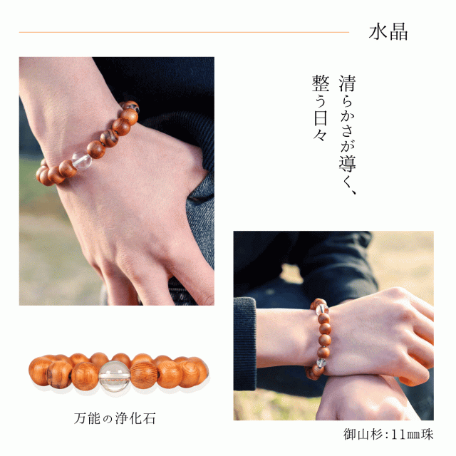 御山杉ブレスレット 水晶 天然石 パワーストーン アクセサリー ゴム メンズ レディース 魔除け お守り ケース付き 贈答用 ギフト 三重県 伊勢