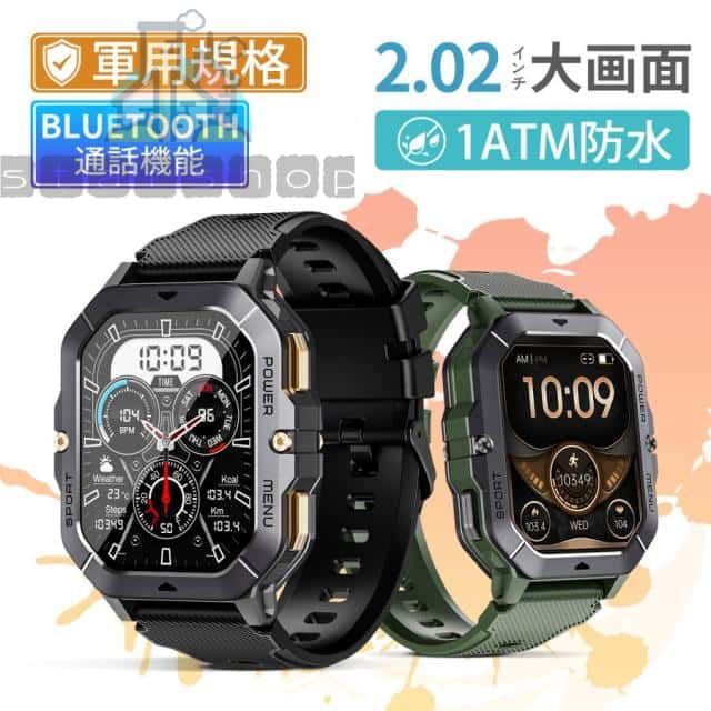 【2025新登場・2.02インチ超大画面】スマートウォッチ 軍用規格 Bluetooth通話機能 運動モード 着信通知 1ATM防水 音声アシスタント マイク内蔵 睡眠モニター