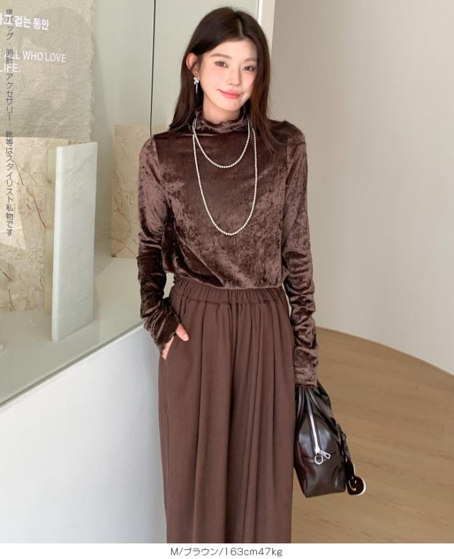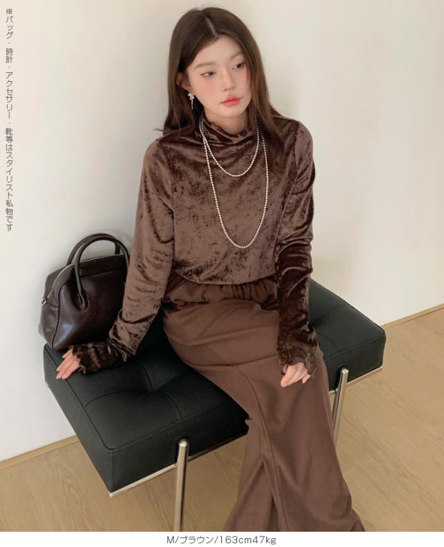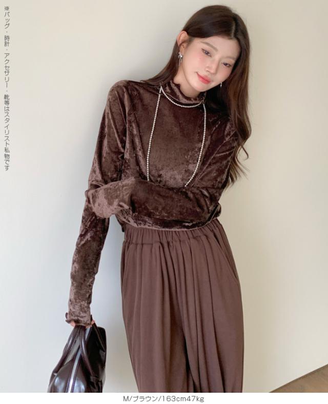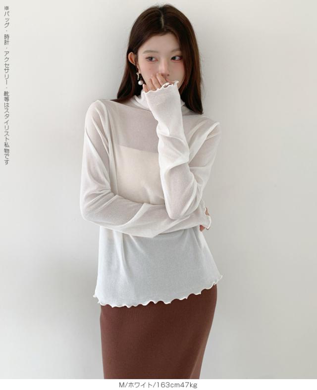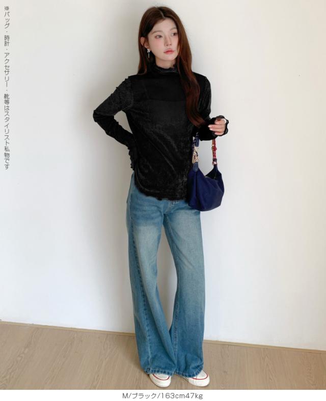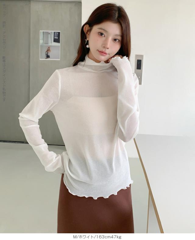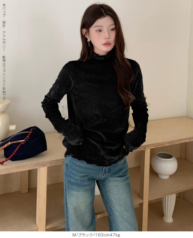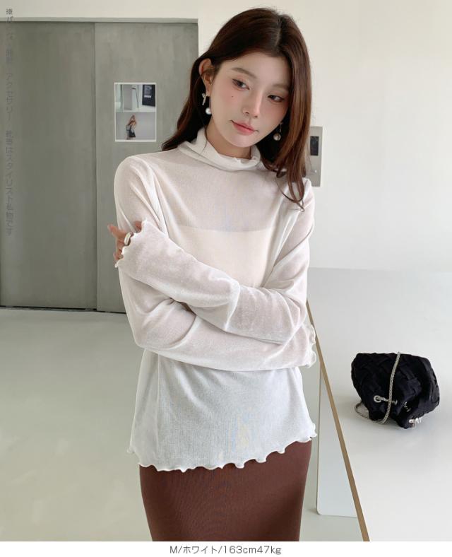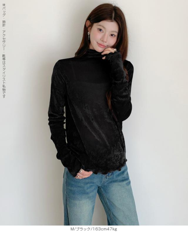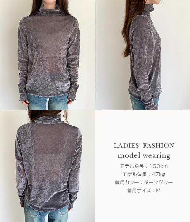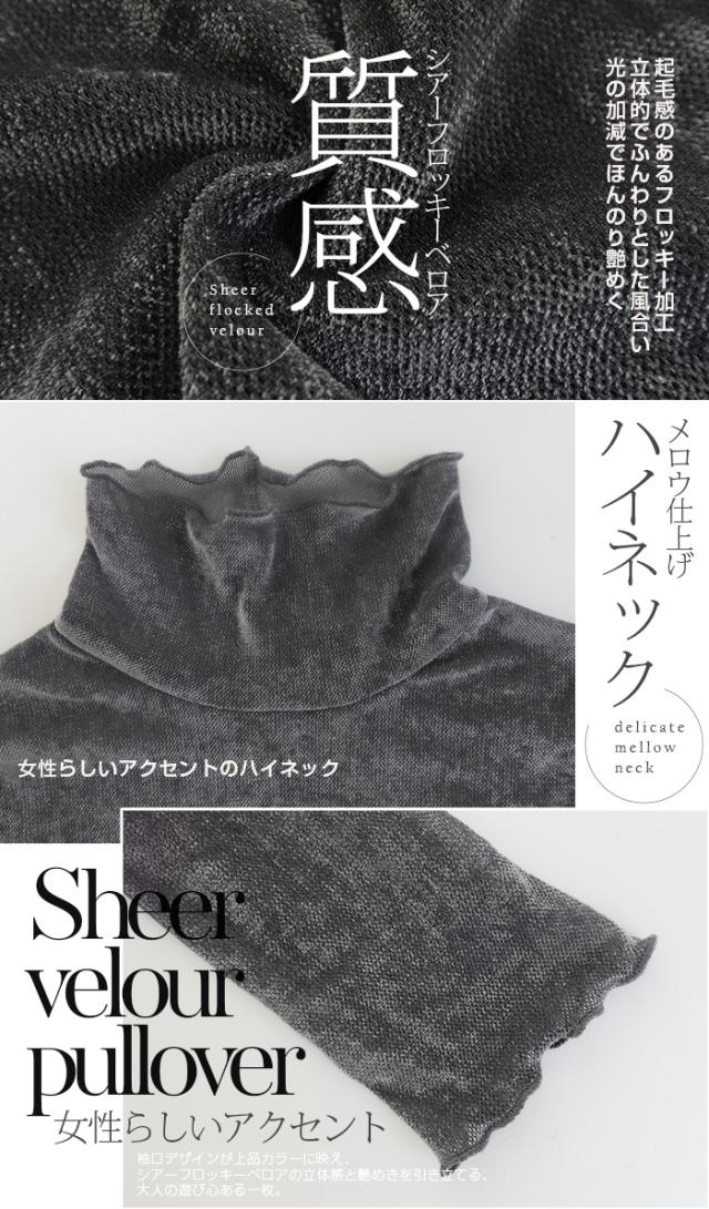 40%OFFクーポン!ベロア トップス シアーフロッキーベロア レディース 長袖 ハイネック メロウフリル シアー フロッキー ベロアプルオーバー 透け感 秋冬 インナー 重ね着 エレガント 【シアーフロッキーベロア見えメロートップス】 秋新作 c_bag