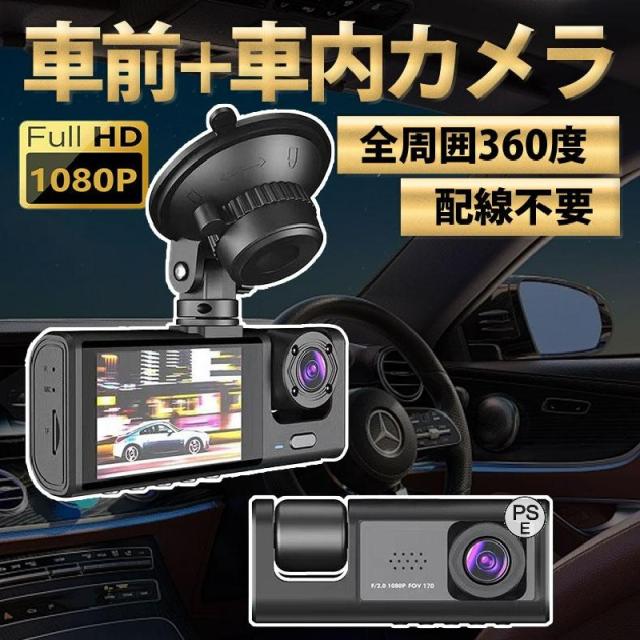 ドライブレコーダー ドラレコ 2カメラ 配線不要 HD1080P 200万画素 フルHD 前170°車内120° 広範囲 ループ録画