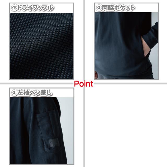 ◇機能:右胸ファスナーポケット・首元ボタン・左袖ペン差し