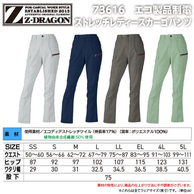 自重堂 ジードラゴン Z-DRAGON 作業服 73616 エコ製品制電ストレッチレディースカーゴパンツ EL 秋冬 作業着