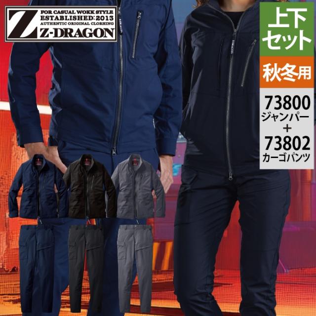 自重堂 ジードラゴン Z-DRAGON 作業服 上下セット 73800 ストレッチジャンパー と 73802 ノータックカーゴパンツ 秋冬 作業着 作業ズボン