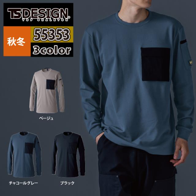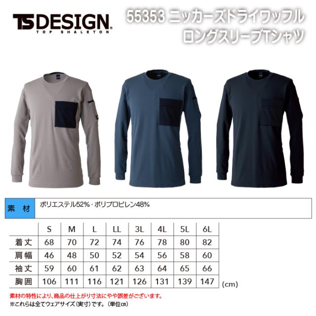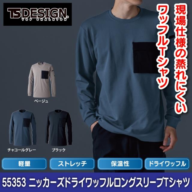 藤和 TSDESIGN 作業服 55353 ニッカーズドライワッフルロングスリーブTシャツ S-LL 秋冬 作業着
