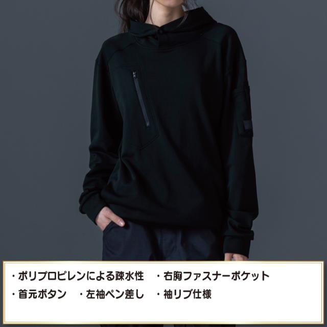 ◇機能:右胸ファスナーポケット・首元ボタン・左袖ペン差し