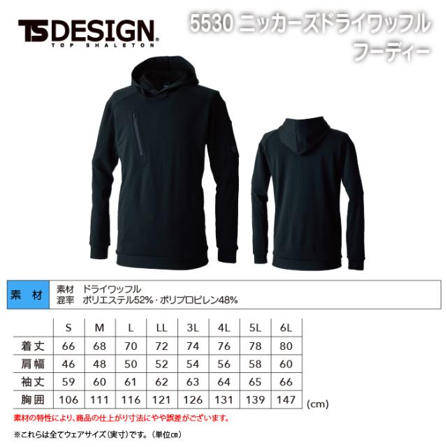 藤和 TSDESIGN 作業服 5530 ニッカーズドライワッフルフーディー 3L-4L 秋冬 作業着