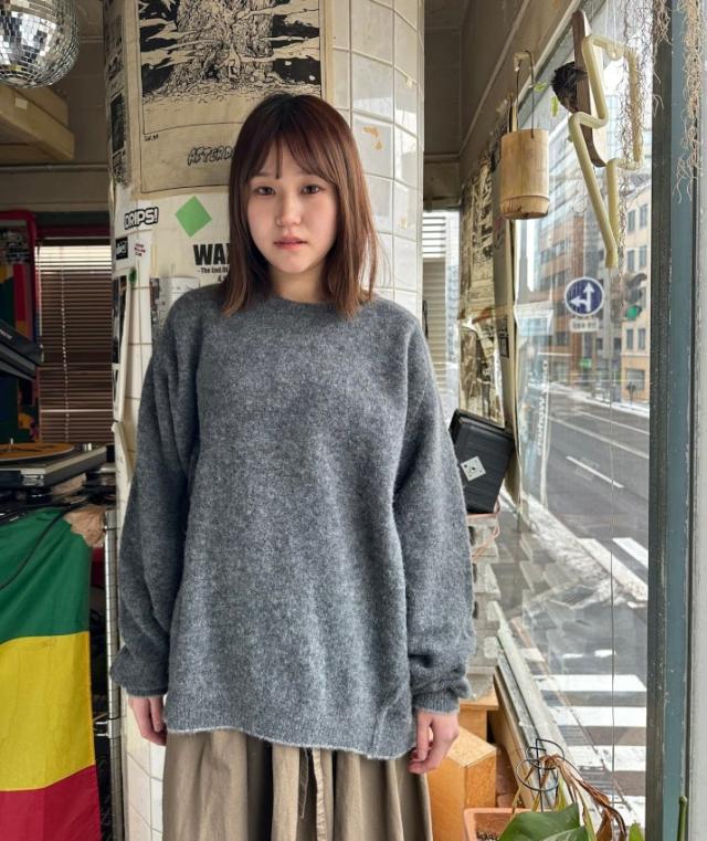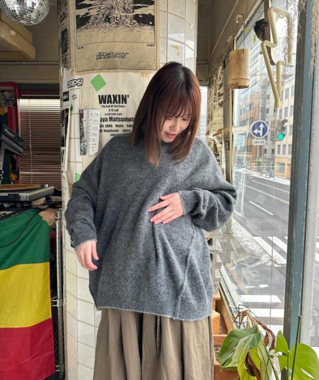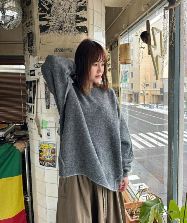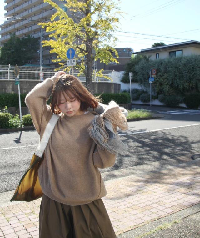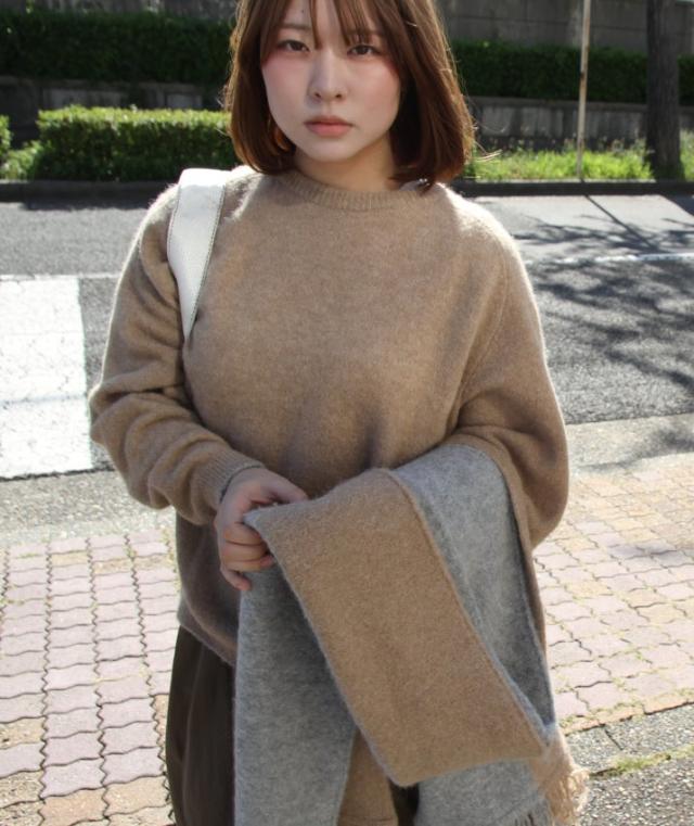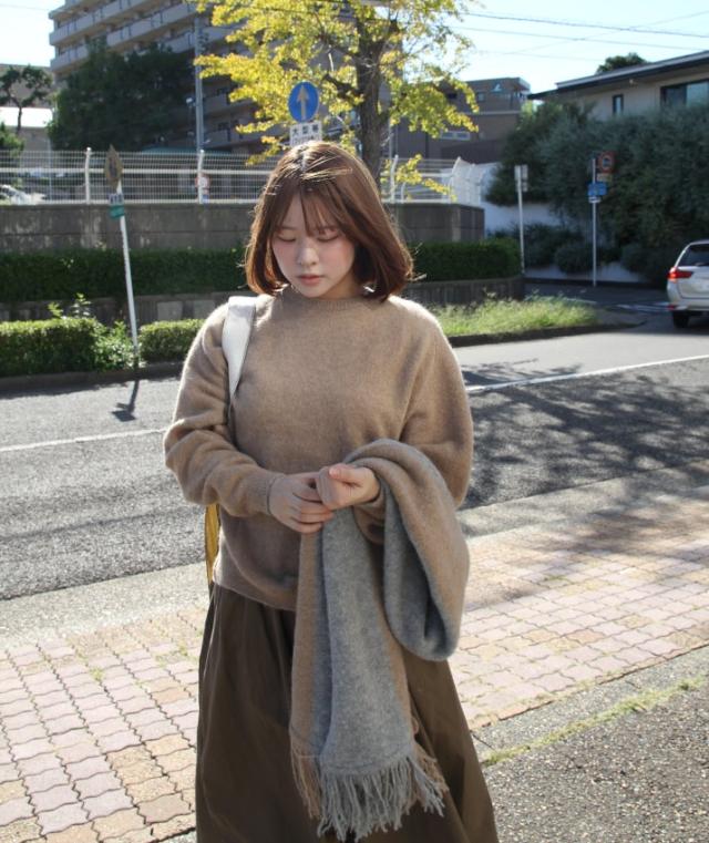 柔らかく光沢感のあるベビーアルパカ配合のタムヤーン(起毛糸)を使用。軽やかで肌触りが良く、高級感のある質感がコーディネートを引き立てます。カラーはスモーキーな3色展開で、どんなスタイルにも馴染む上品な印象。