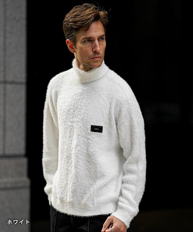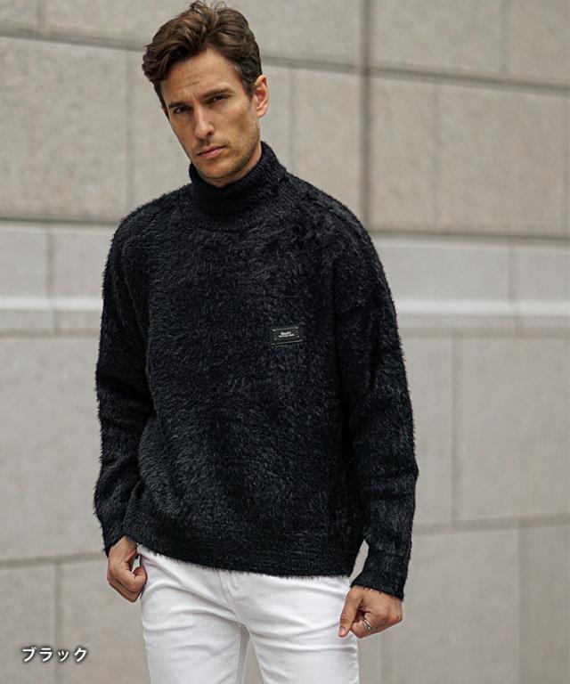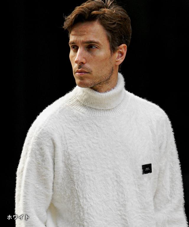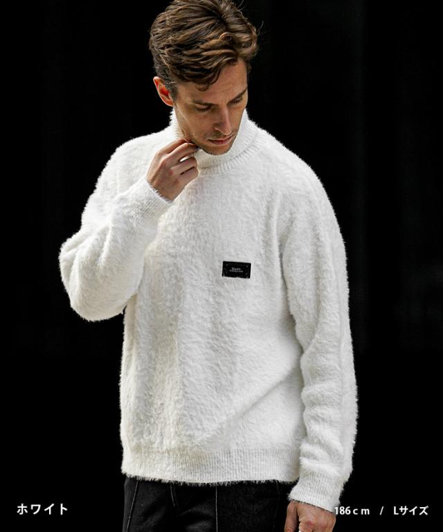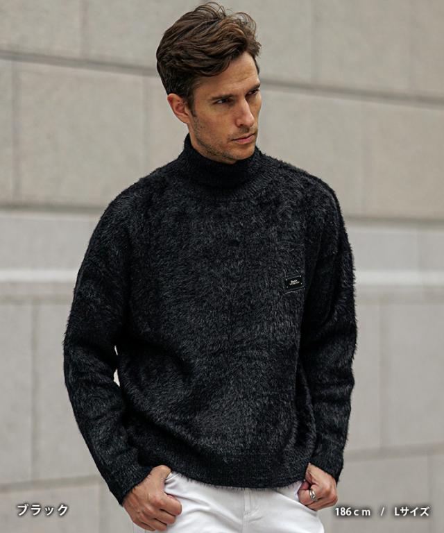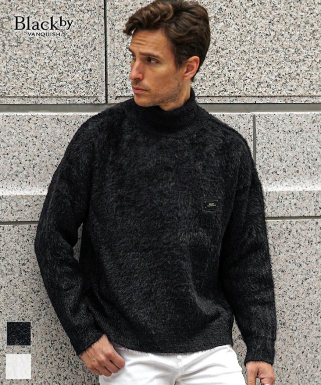 タートルネック ニット メンズ ブランド モヘアニット セーター メンズ ニットセーター 長袖 起毛 トップス 黒 白 ブラック ホワイト 秋 秋服 秋物 秋冬 メンズファッション ちょいワル お兄系 オラオラ系 Black by VANQUISH ブラックバイヴァンキッシュ joker ジョーカー