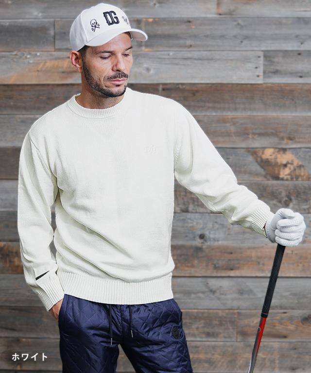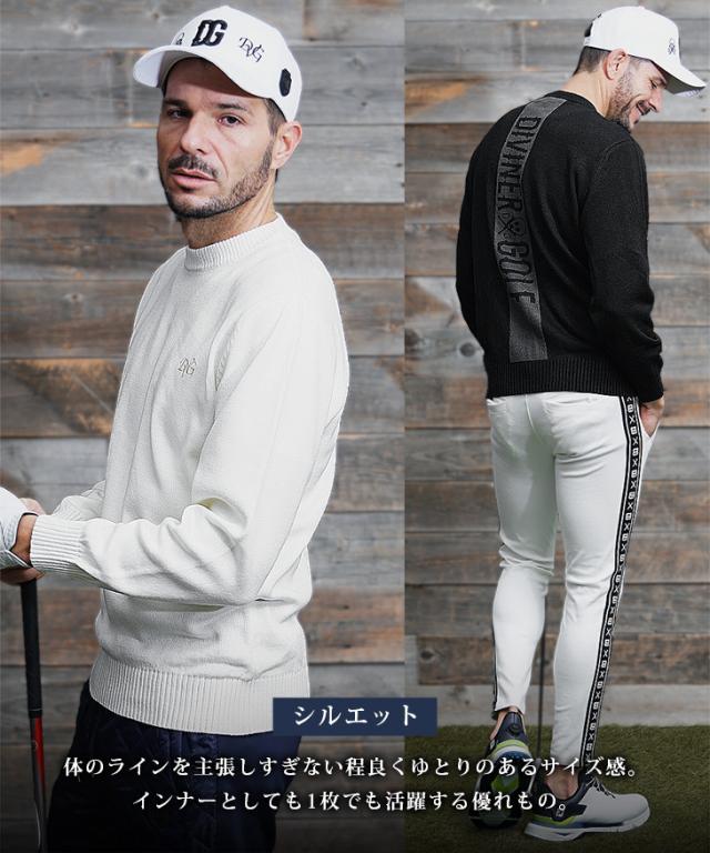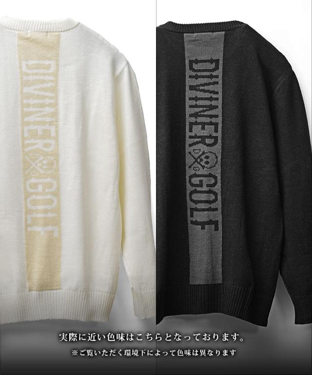 【送料無料】【DIVINER GOLF】 ゴルフウェア メンズ セーター ブランド ニット メンズ 大きいサイズ クルーネック ロゴニット ライン ニットセーター ホワイト ブラック 白 黒 ゴルフ トップス 春 秋 メンズファッション ディバイナーゴルフ joker ジョーカー