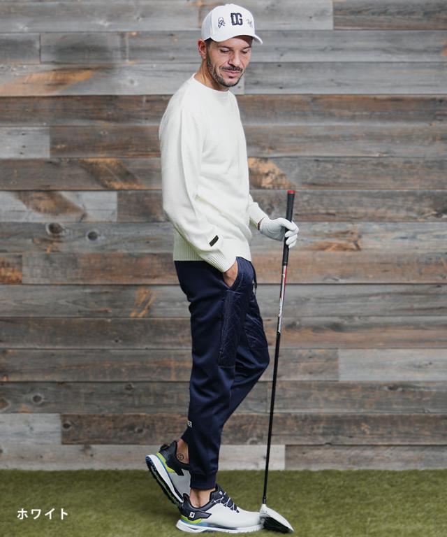 DIVINER GOLF(ディバイナーゴルフ)『バックロゴクルーネックニット』【DIVINER GOLF(ディバイナーゴルフ) バックロゴクルーネックニット】■Design/デザインコースで映える、攻めのゴルフスタイル。ゴルフはプレーだけじゃない。スタイルでも魅せる時代だ。袖・裾・首元のリブ仕様がフィット感を高め、アクティブなラウンドでもストレスフリー。背中に大胆にあしらわれたDIVINER GOLFのロゴが、プレイヤーの自信を象徴。右手首のゴム製ロゴパッチがさりげなく個性を主張し、クラブハウスでも一目置かれる存在に。色々なコーデと合わせやすいブラック&ホワイトの2色展開。冬から春へ、ゴルフをもっと自由に、もっとスタイリッシュに。
