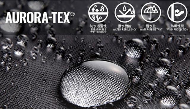表地には絶対的な信頼を誇る防水透湿素材「オーロラテックス」を採用し、いかなる天候にも対応。