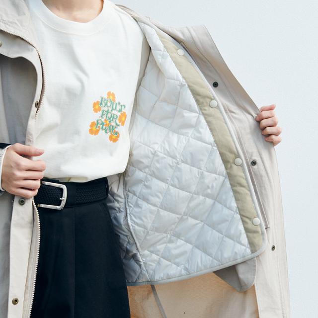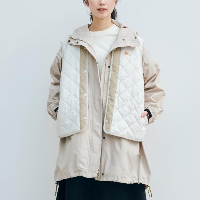取り外し可能なインナーベストがセットになっており、「アウター単体」「ベスト単体」「ベストをアウターの上から重ねて」と、1着で3通りの着こなしが可能です。