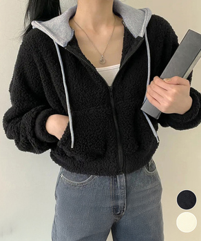 もこもこのボア素材で仕上げたショート丈レディースジップアップパーカー。