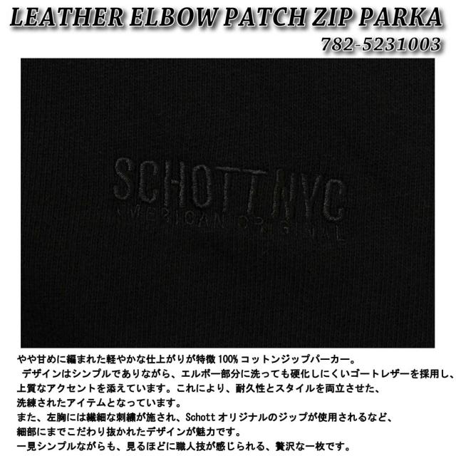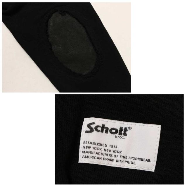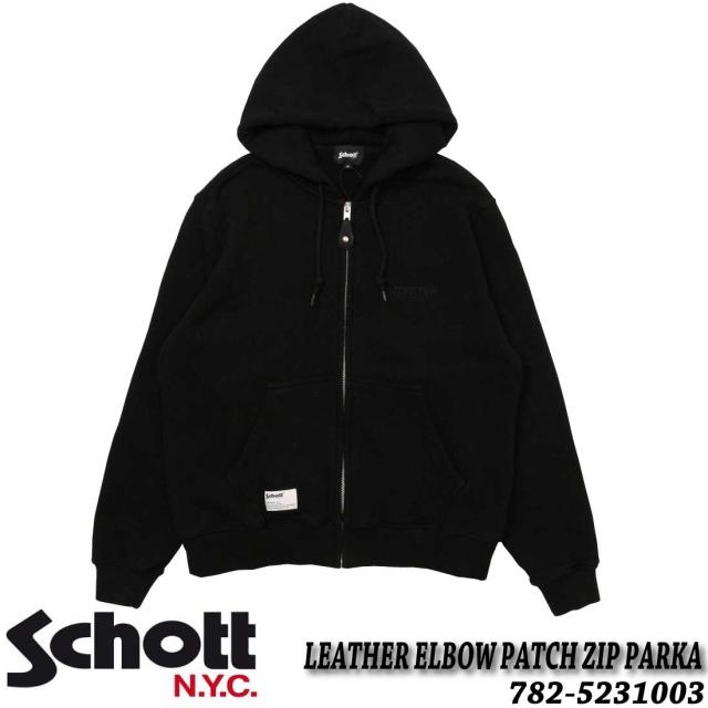 Schott ショット 長袖 パーカー ジップパーカー 782-5231003 レザー エルボーパッチ ジップパーカー ゴートレザー スウェットパーカー メンズ