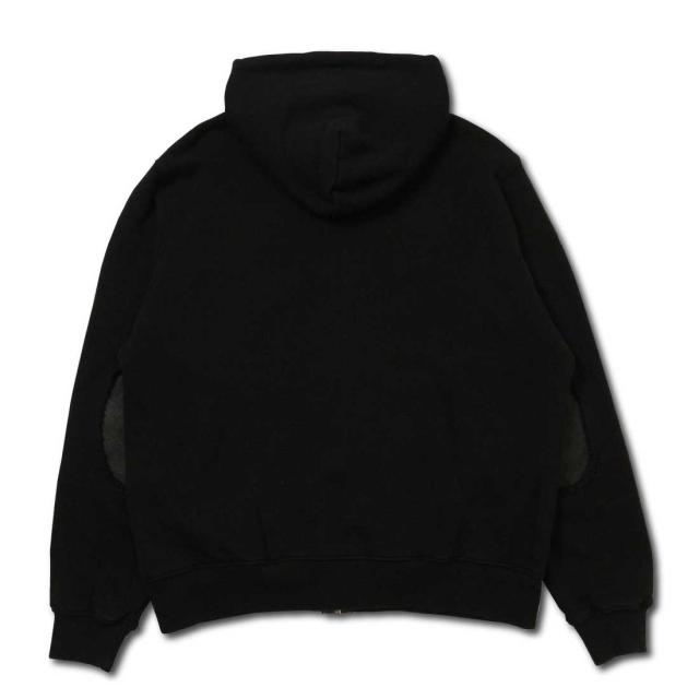 LEATHER ELBOW PATCH ZIP HOODED SWEAT