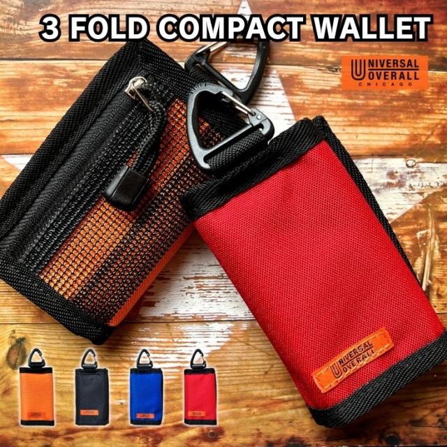 UNIVERSAL OVERALL ユニバーサルオーバーオール 三つ折り コンパクトウォレット ミニ財布 財布 メンズ レディース 三つ折り財布 小さい 小さめ 軽い 軽量 コンパクト シンプル カジュアル アメカジ アウトドア 女性 男性 中学生 高校生 大学生 カラビナ付き ミニウォレット