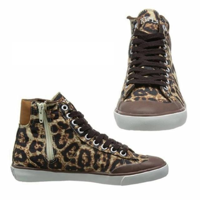 【※アウトレット※】リプレイ REPLAY シューズ スニーカー ハイカット GWV61 C0002T レディース アニマルプリント レオパード ブラウン