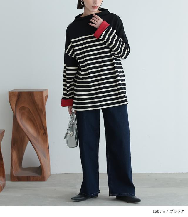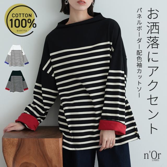 カットソー 長袖 レディース トップス ロンT ボーダー柄 パネルボーダー ボトルネック 配色 綿100% オーバーサイズ 秋 冬 春 【TP】 Tシャツ ボーダーTシャツ ボーダーT プルオーバー n'OrLABEL ノア—ルレーベル 大人女子 大人可愛い お洒落可愛い 大人カジュアル ベーシック ラフ オフィスカジュアル 上品 きれいめ ナチュラル ホワイト 白 オフホワイト 折り返し袖 ミディ丈 ミドル丈 チュニック丈 スリット 無地 コットン100% レイヤード 重ね着 おうちで洗える ロングシーズン カジュアル シンプル モード キレカジ フェミニン ゆったり ゆる 楽ちん お尻が隠れる Sサイズ Mサイズ Lサイズ LLサイズ 3Lサイズ XLサイズ フリーサイズ ぽっちゃり 体型カバー 大きいサイズ プラスサイズ 10代 20代 30代 40代 50代 60代 低身長 高身長 女子会 オフィス 通勤 通学 お買い物 お出掛け 旅行 リゾート レジャー おしゃれ お洒落 トレンド 流行 osharewalker オシャレウォーカー おしゃれうぉーかー ブラック 黒[ID]13to0fv