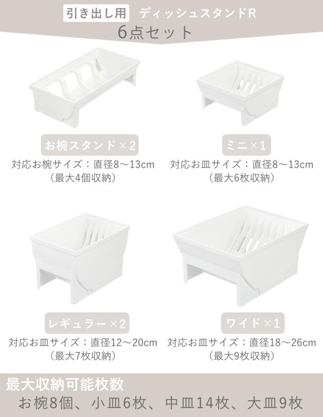 トトノ 引き出し用 ディッシュスタンド 6点セット ミニ レギュラー ワイド お椀 ( ミニ×1 レギュラー×2 ワイド×1 お椀×2 お皿 収納 日本製 食器収納 食器立て 食器ラック 茶碗 抗菌 食器 皿立て プレート 立て 置き 整理 )