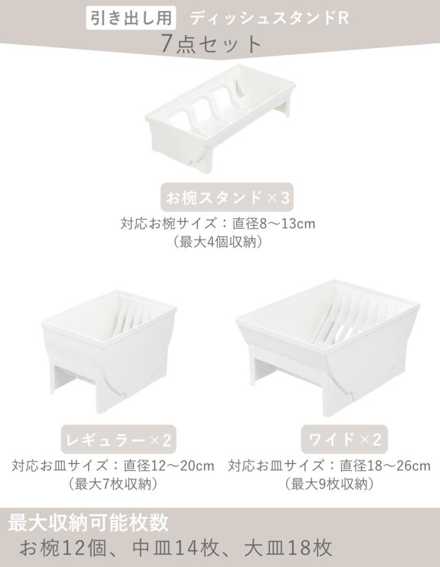 トトノ 引き出し用 ディッシュスタンド 7点セット レギュラー ワイド お椀 ( レギュラー×2 ワイド×2 お椀×3 お皿 収納 日本製 食器収納 食器立て 食器ラック 茶碗 抗菌 食器 皿立て プレート 立て 置き 整理 )
