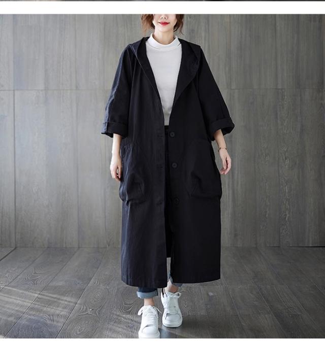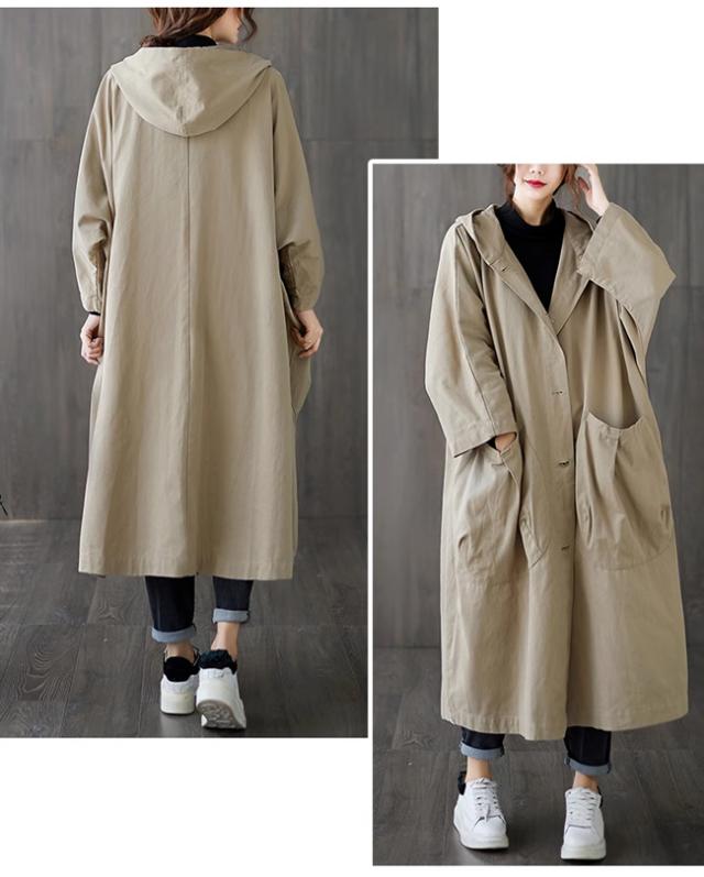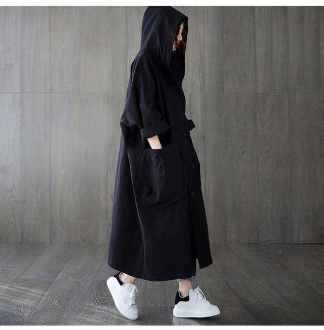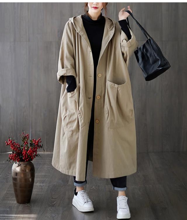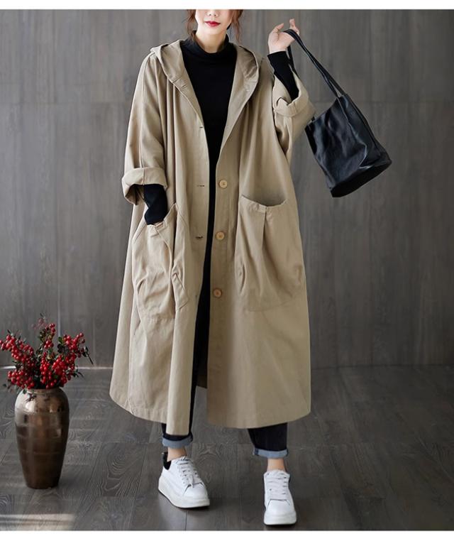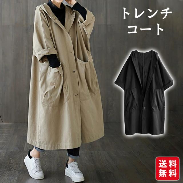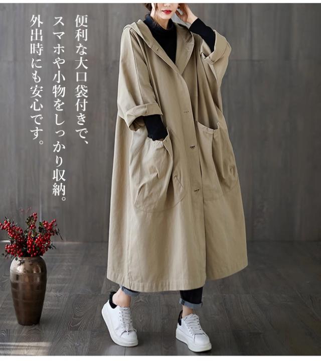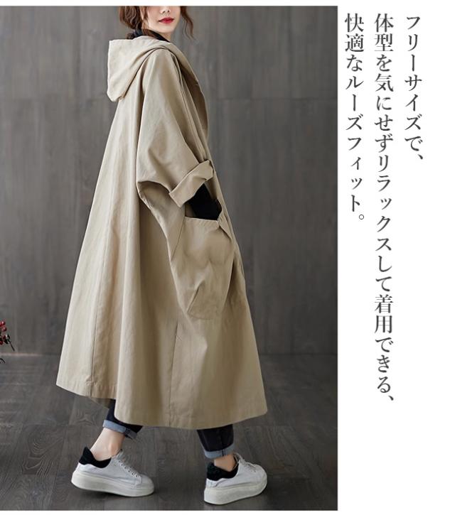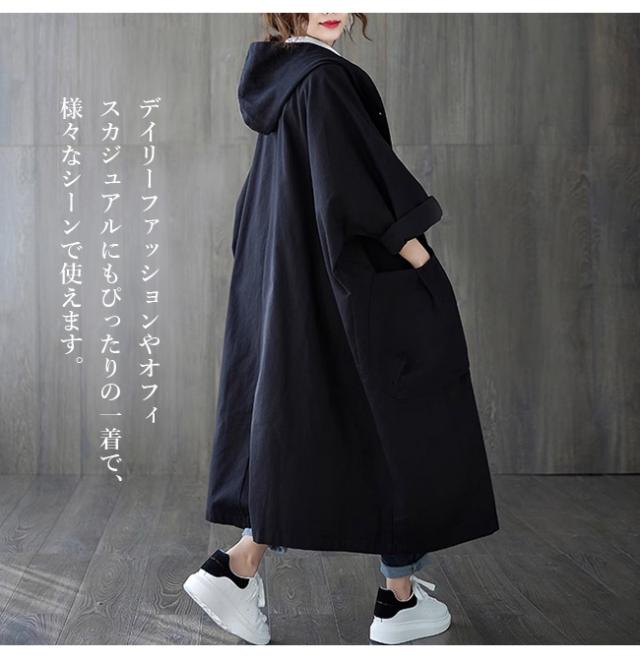 秋新作 トレンチコート レディース ロングジャケット スプリングコート フード付き 長袖 オーバーサイズ 春服 カジュアル 無地 アウター