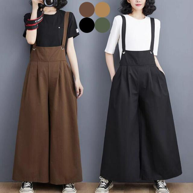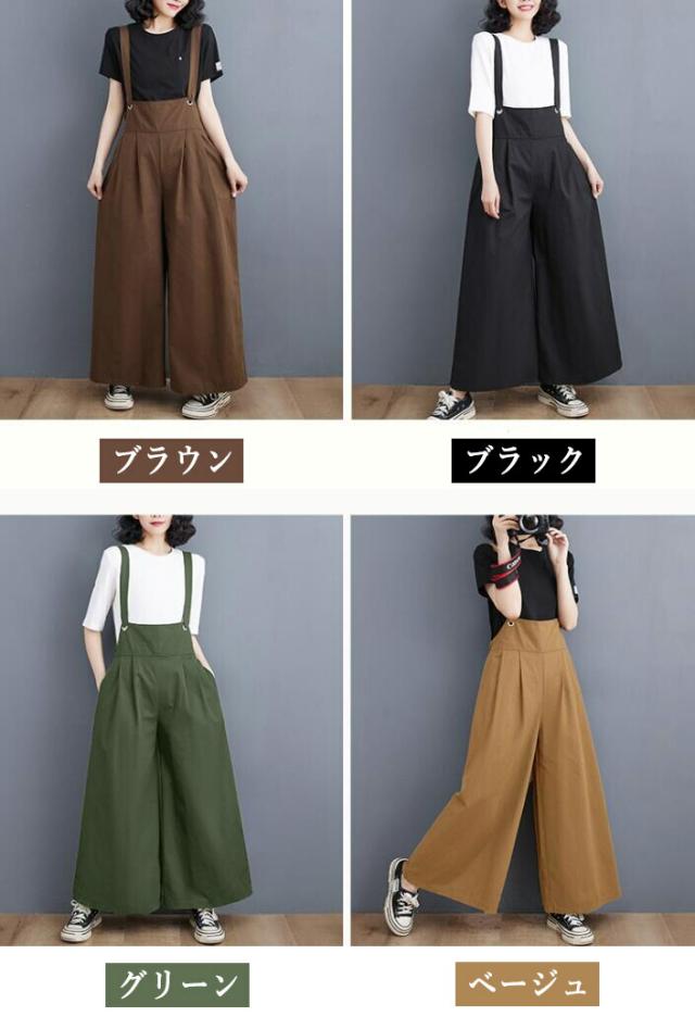 サロペット オールインワン プリーツ パンツ ゆるサロペット レディース ボトムス ゆったり 楽ちん 大きいサイズ 体型カバー