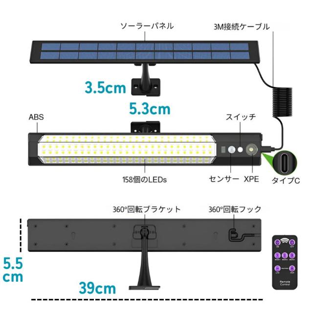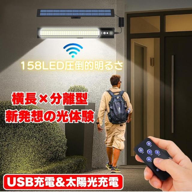 ソーラーライト 屋外 防水 人感 センサーライト リモコン ガーデンライト ソーラーセンサーライト 分離型 分離 パネル 防犯ライト 防災ライト 人感センサーライト 158 LED 3モード太陽光発電 送料無料 防災 作業灯