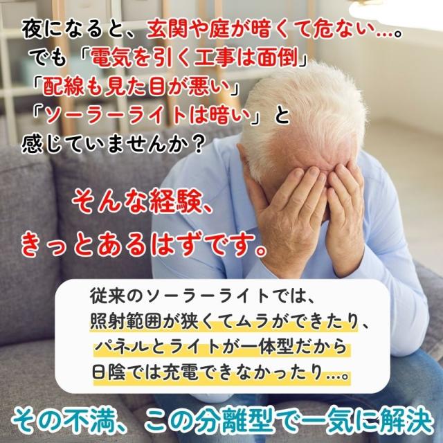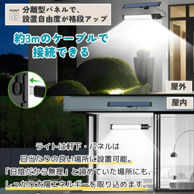 そんな悩みを一瞬で解決するのが、この【分離型ソーラー防犯ライト】。