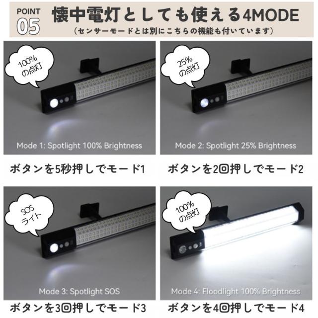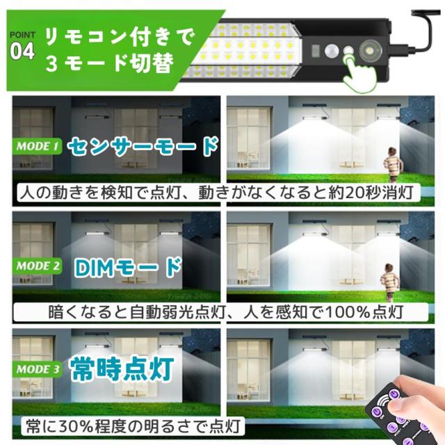 **3つの点灯モード(センサー/DIM/常時点灯)**を搭載し、リモコン操作にも対応。